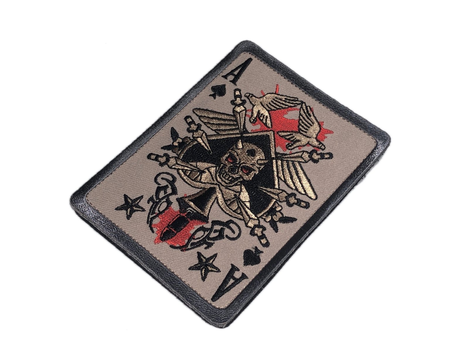 measures 4×3 inches, either iron on or hook and loop backing. Hook fastener is attached to the patch, loop part is provided as well