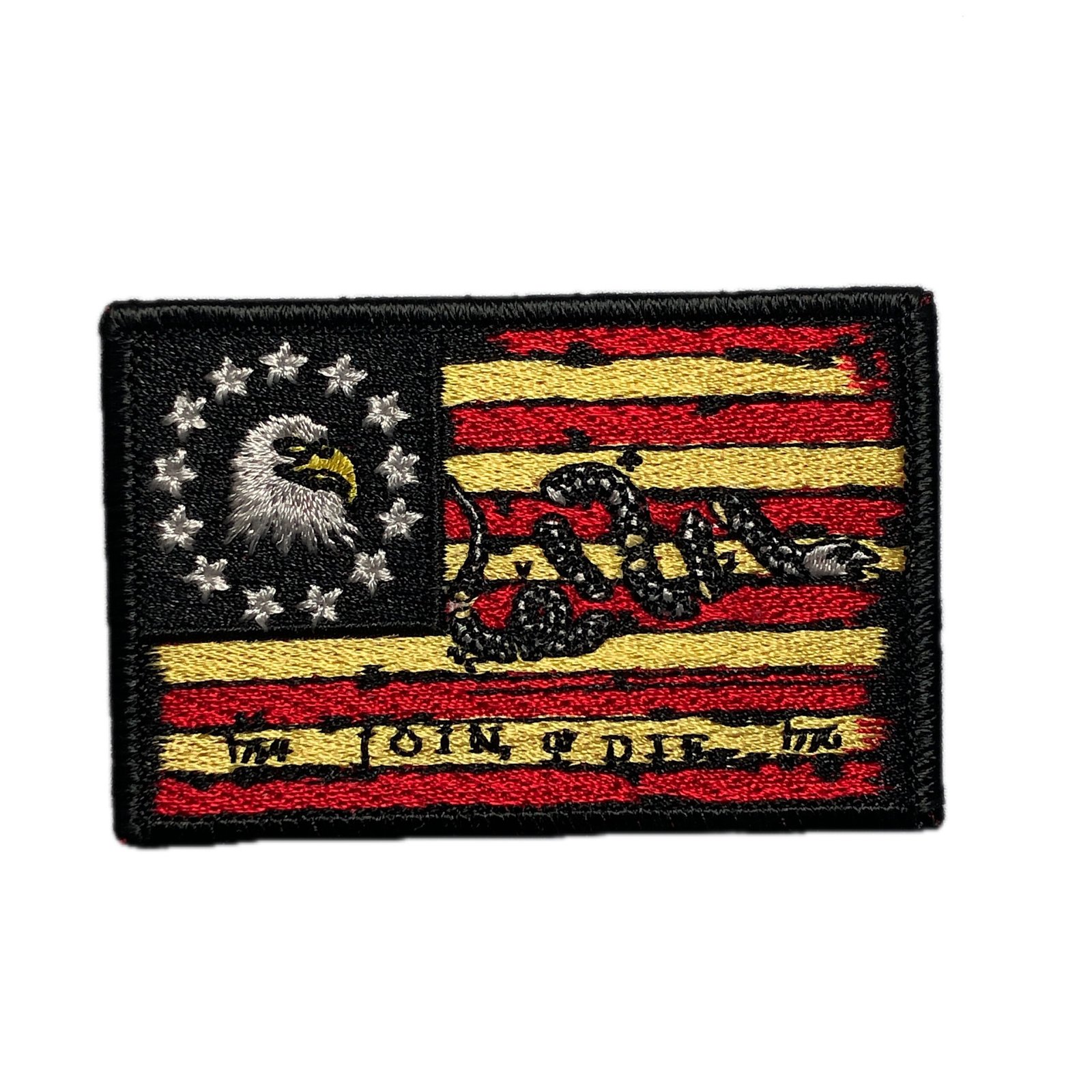 measures 3×2 inches, either iron on or hook and loop backing. Hook fastener is attached to the patch, loop part is provided as well