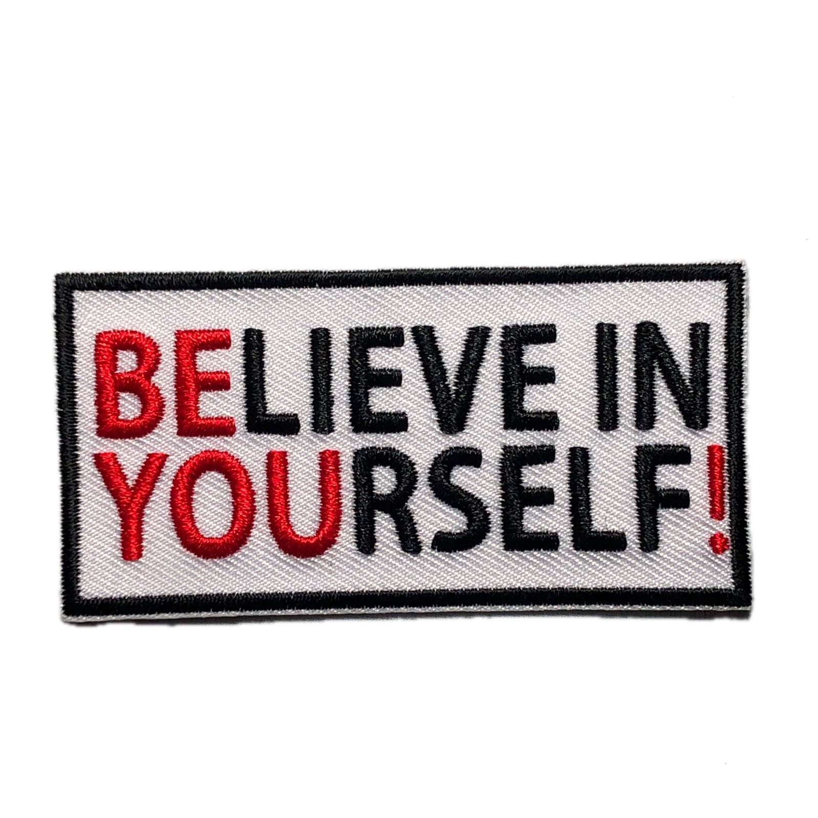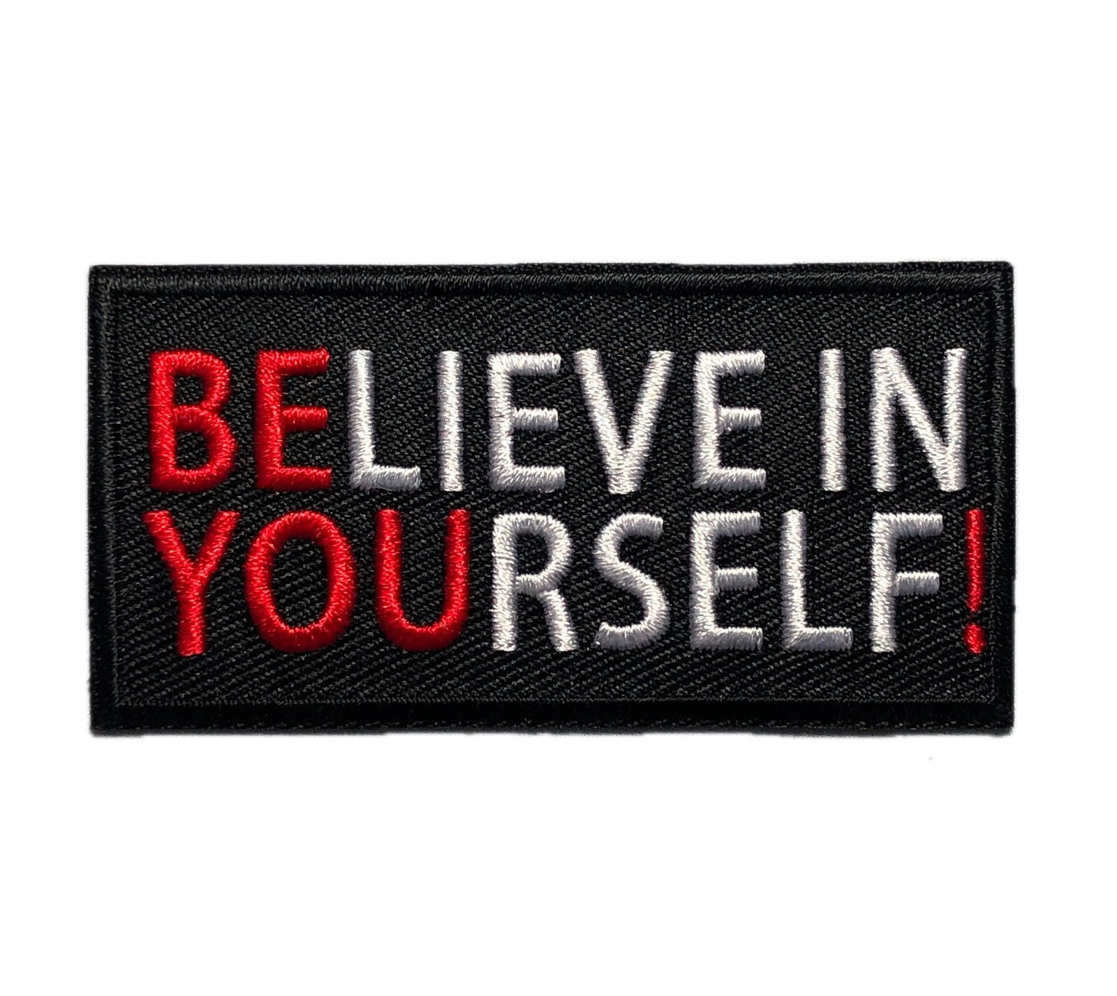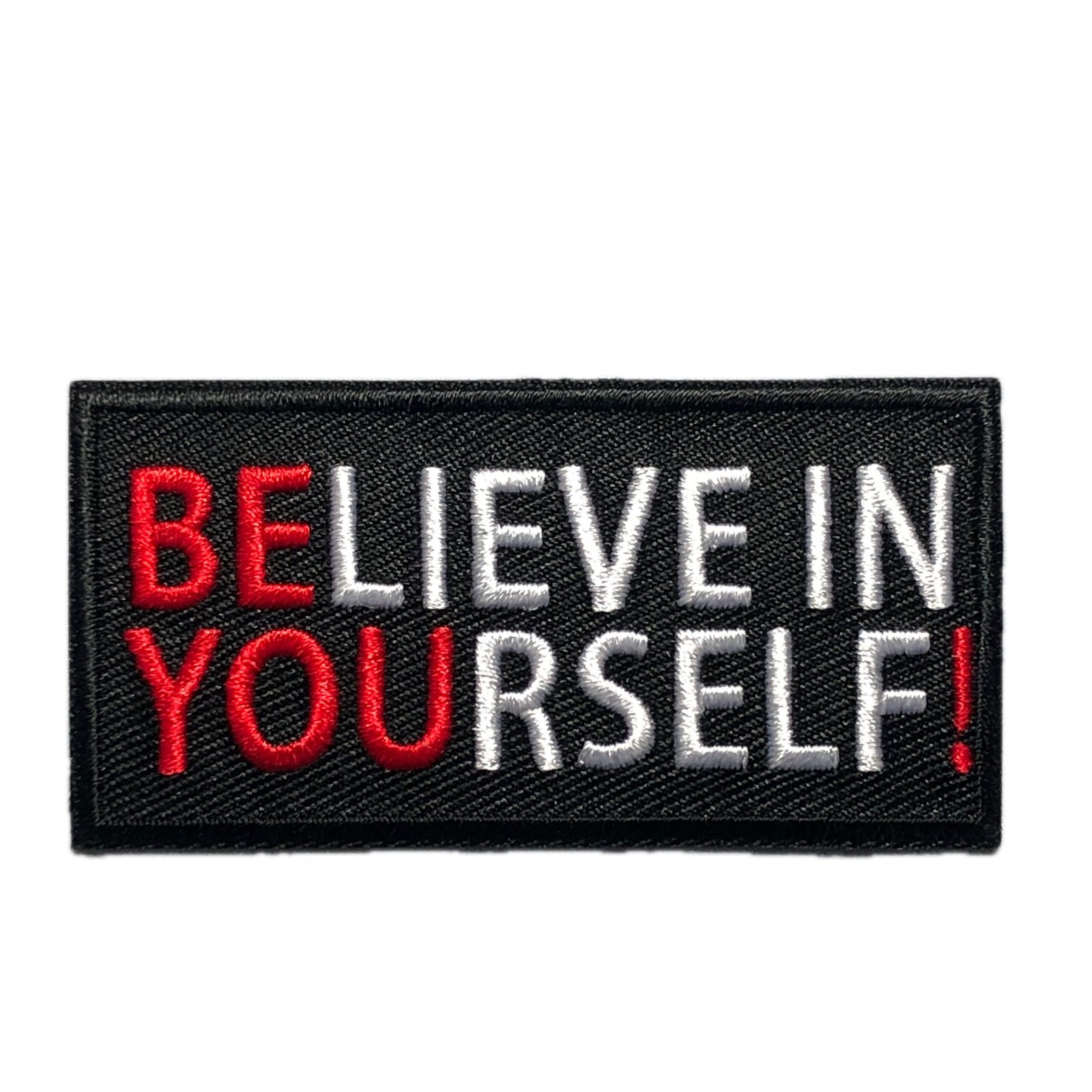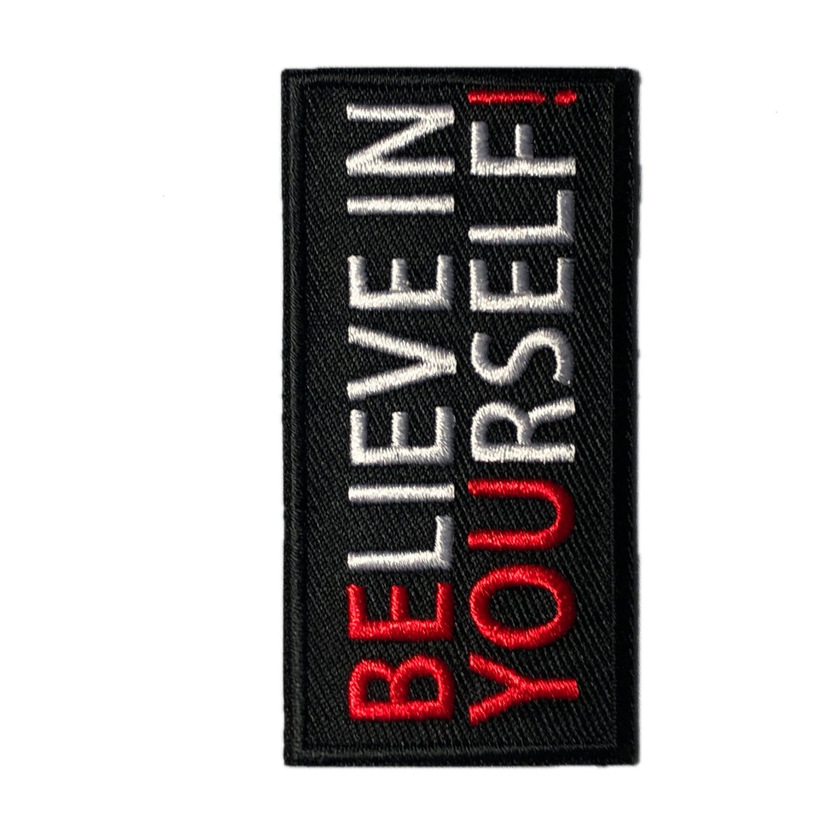 measures 3 x 1.5 inches, either iron on or hook and loop backing. Hook fastener is attached to the patch, loop part is provided as well