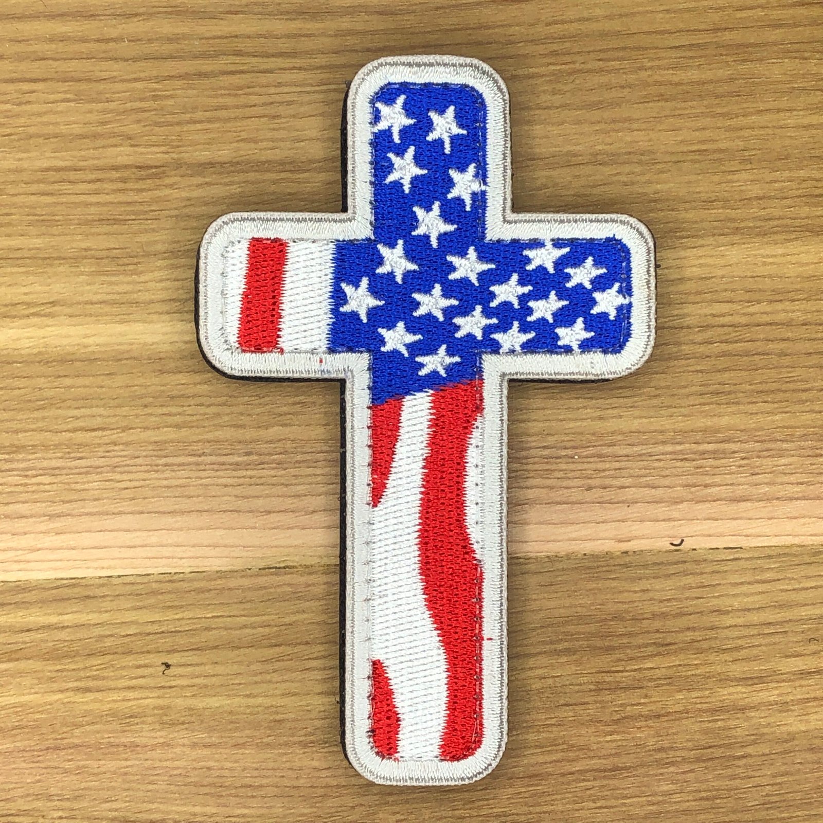 Embroidery Cross Christian Patch Morale Church American Flag waving Star and Stripes ifak tactical badge uniform bag vest multicam believe