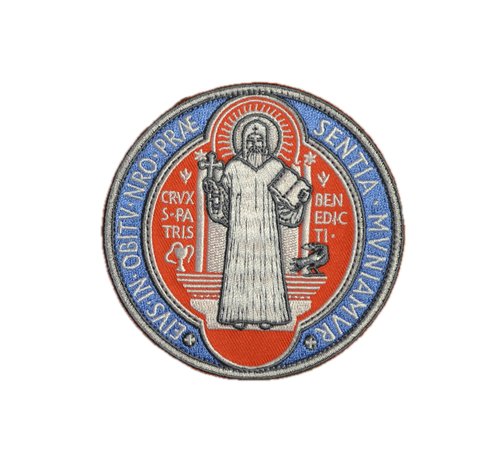 Front St. BENEDICT Medal Patch Of Nursia Roman Catholic Cross Exorcism Crusade Vade Satana Saint Pax Peace Devil Chasing Embroidery Church