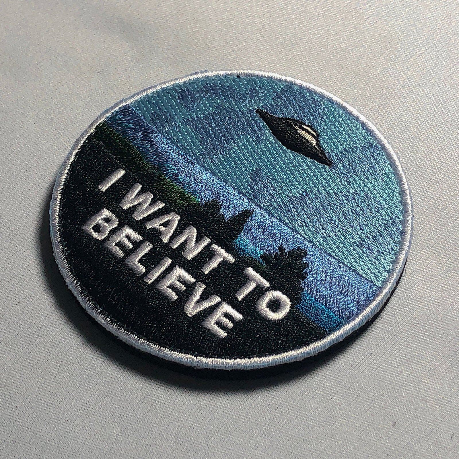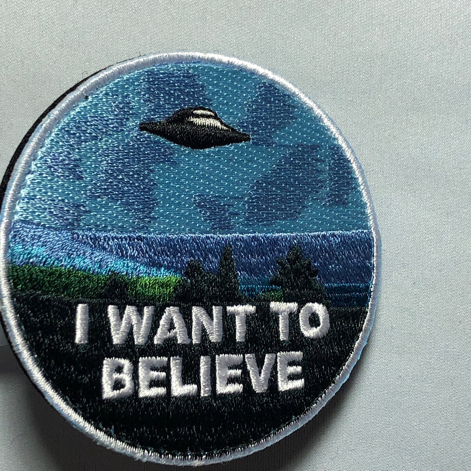 measures 3 inches, either iron on or hook and loop backing. Hook fastener is attached to the patch, loop part is provided as well