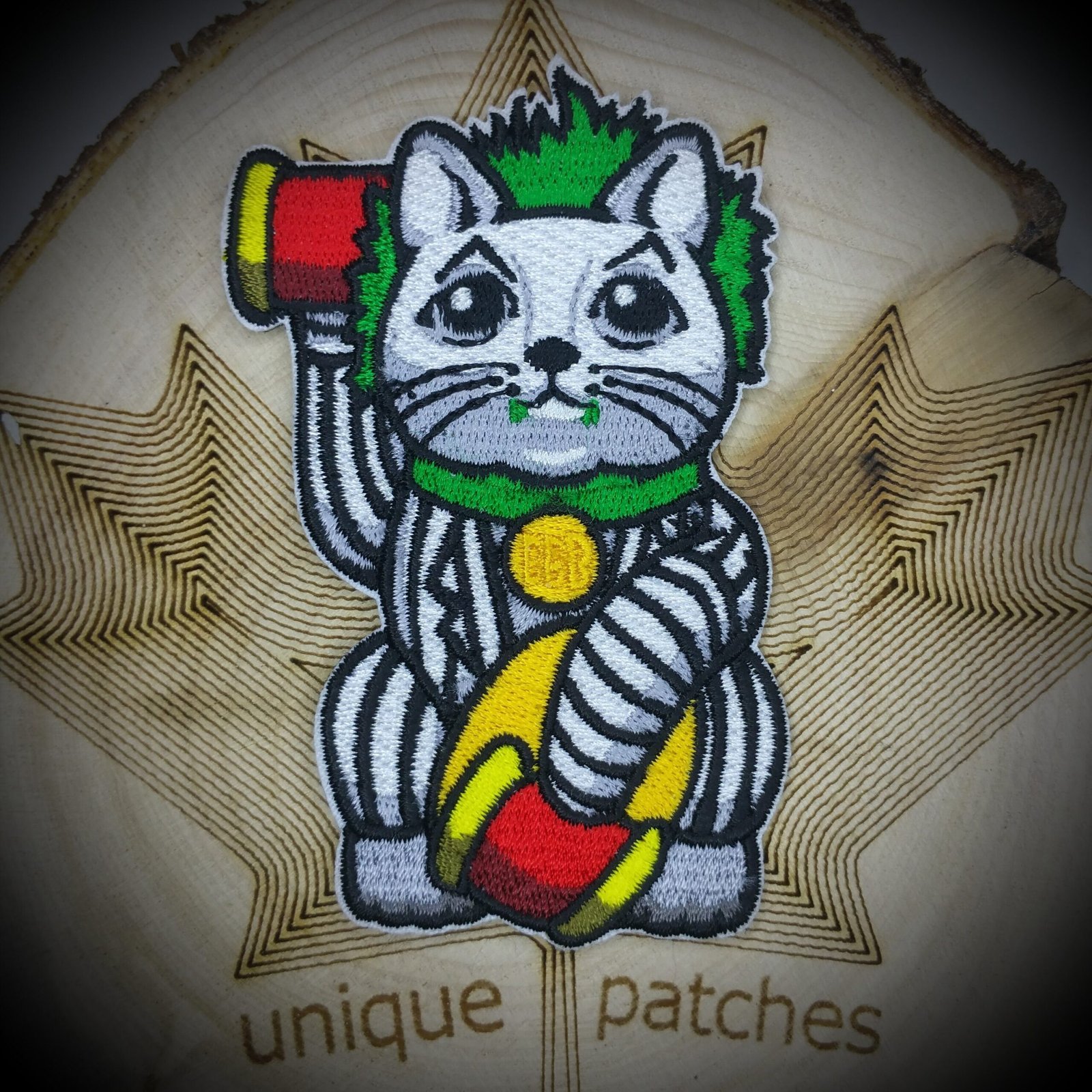 Lucky Cat Maneki Neko Mashup embroidery patch morale hook loop Tim Burton horror film movie Keaton Betelgeuse