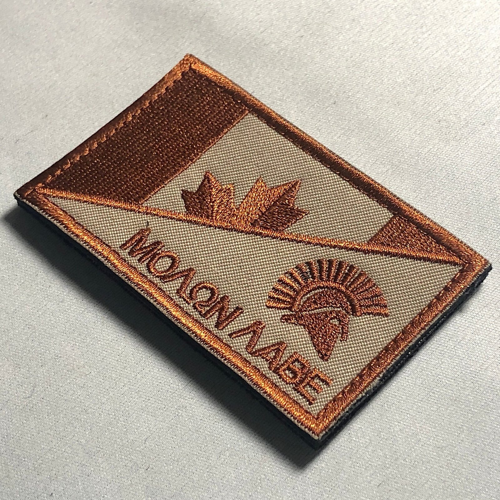 measures 3×2 inches, hook and loop backing. Hook fastener is attached to the patch, loop part is provided as well