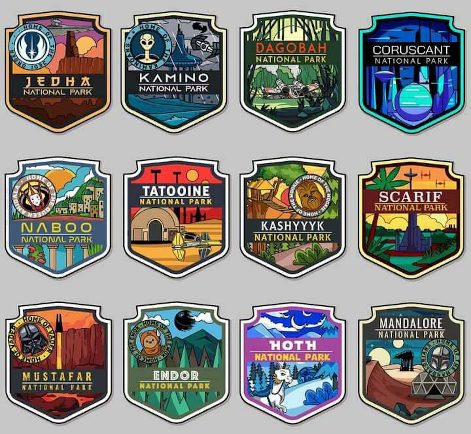 Explore the galaxy with the National Park Star Planets Wars stickers. Featuring iconic locations like Hoth, Endor, Tatooine, and Kashyyyk, this patch pays tribute to Wookies, Ewoks, and is perfect for movie costumes and comicons. Elevate your collection with this intricately designed patch that captures the essence of the Star Wars universe and the spirit of exploration.