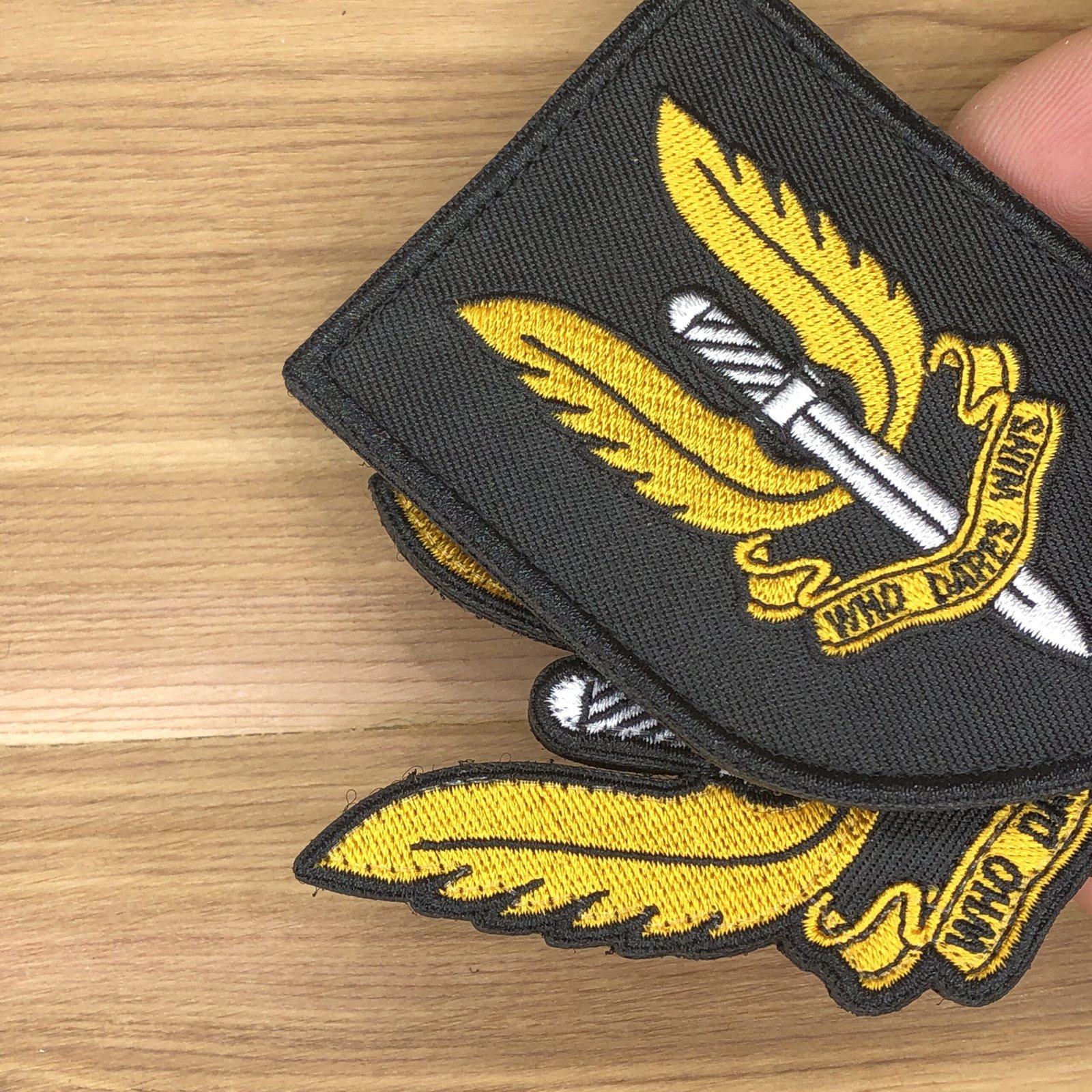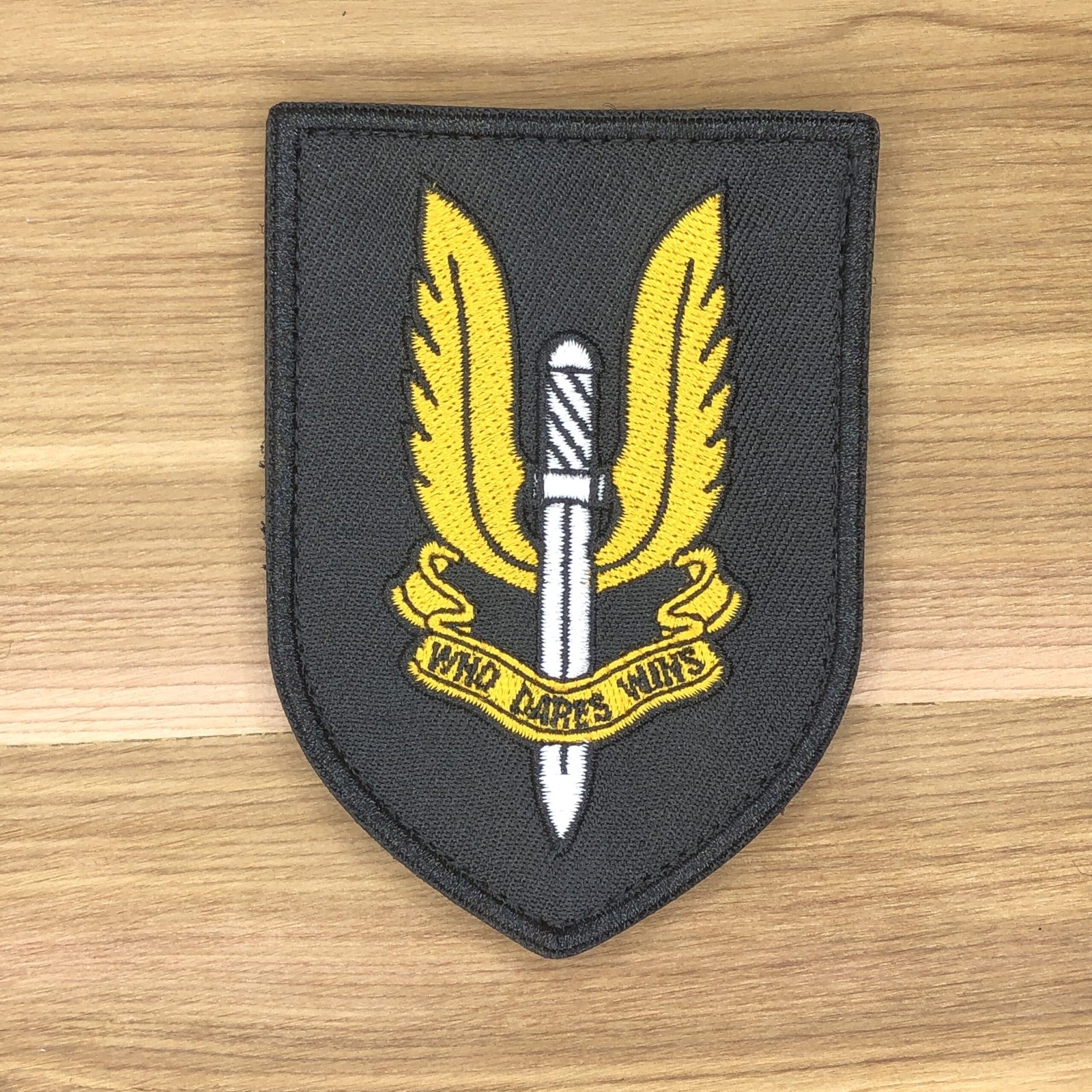 measures 3.5×2.5 inches (shield) and 3.5×2 , hook and loop backing. Hook fastener is attached to the patch, loop part is provided as well