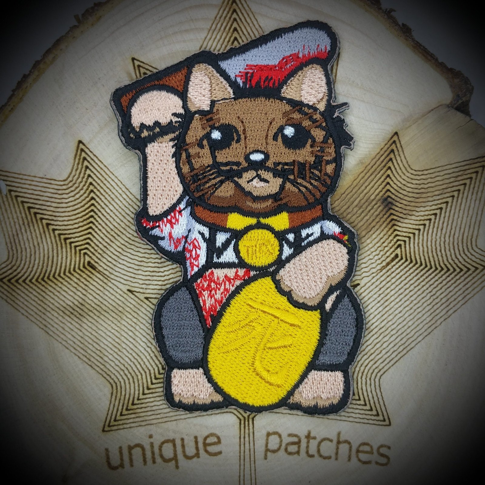 Texas Chain Saw Massacre Lucky Cat Maneki Neko Mashup embroidery patch morale hook and loop movie Halloween Costume Mask horror