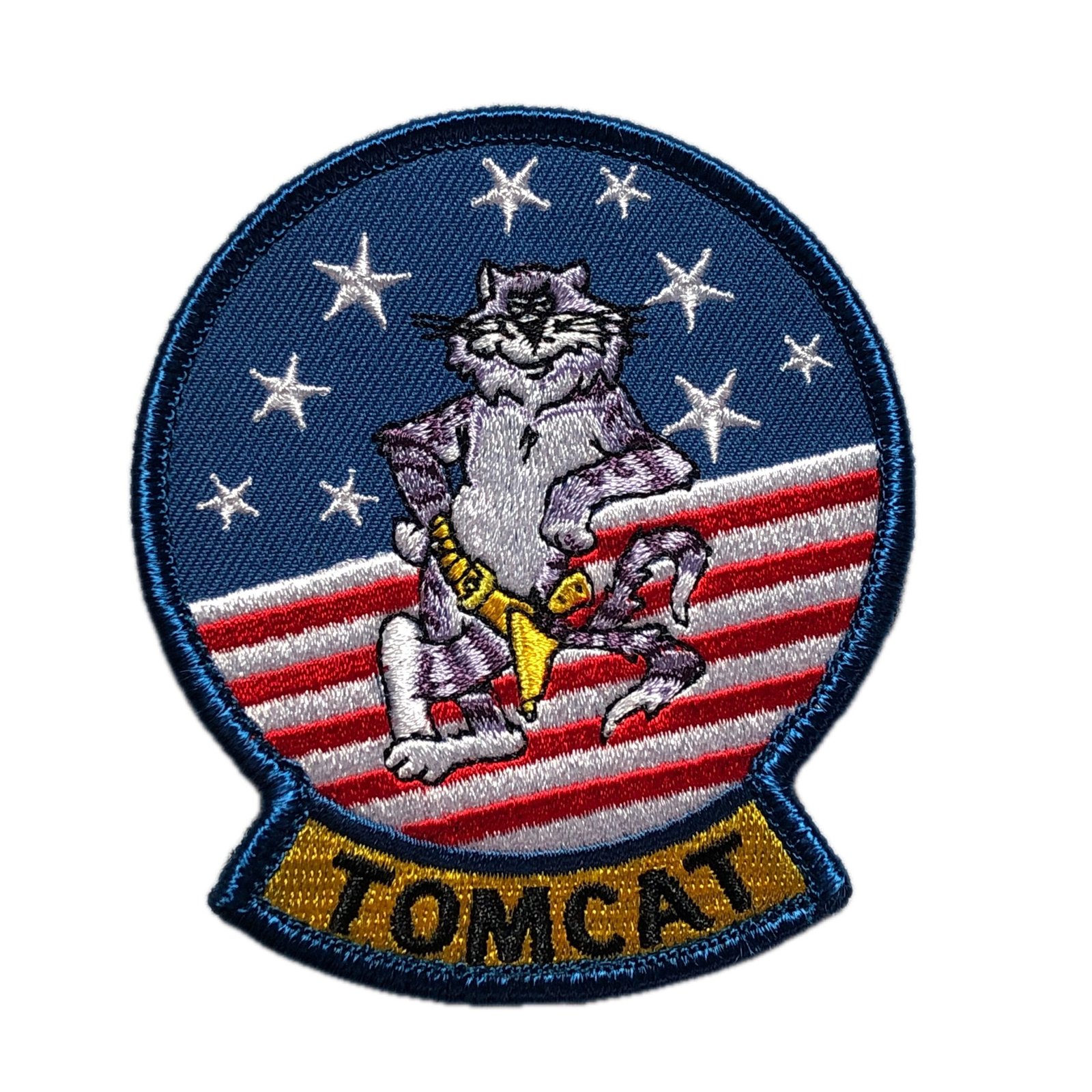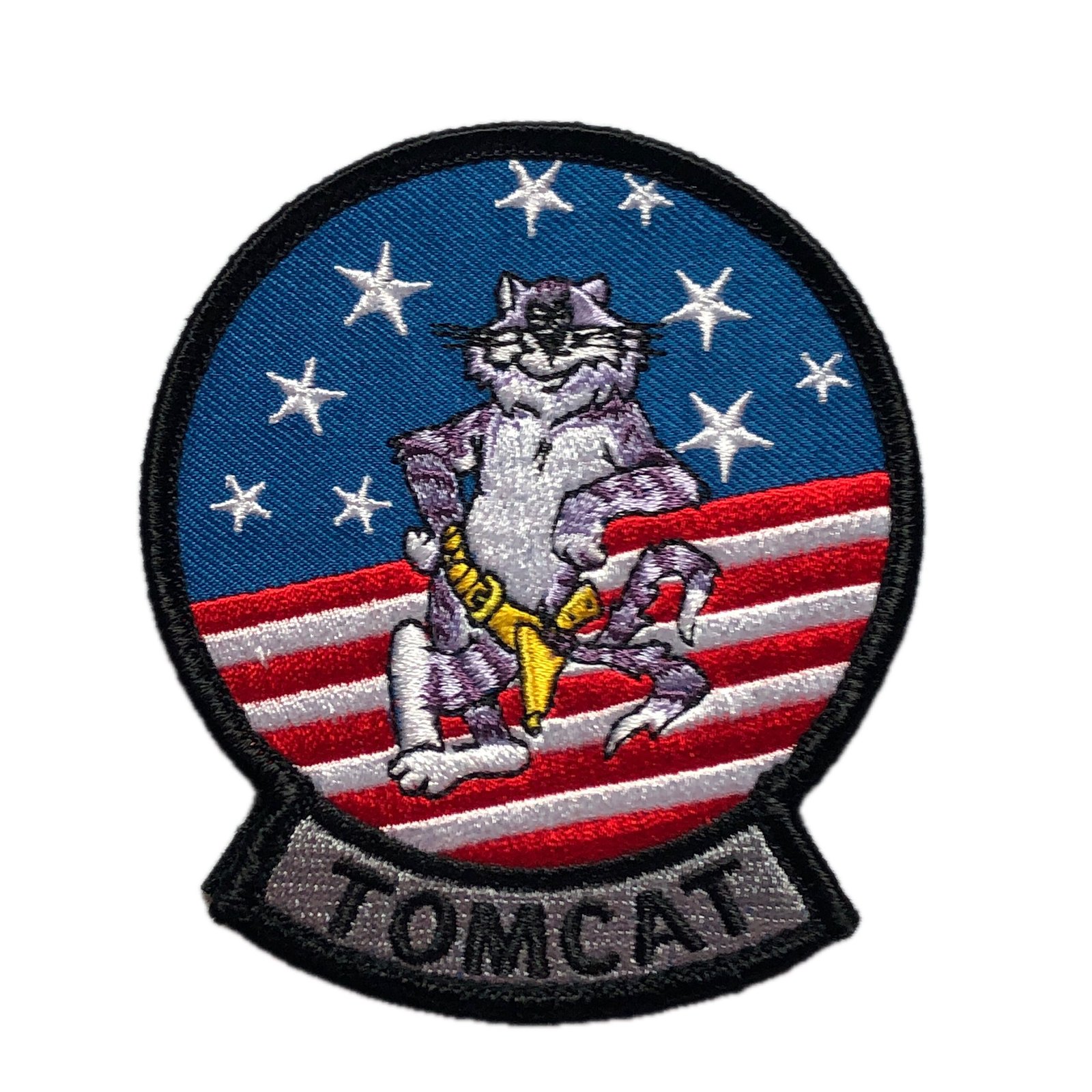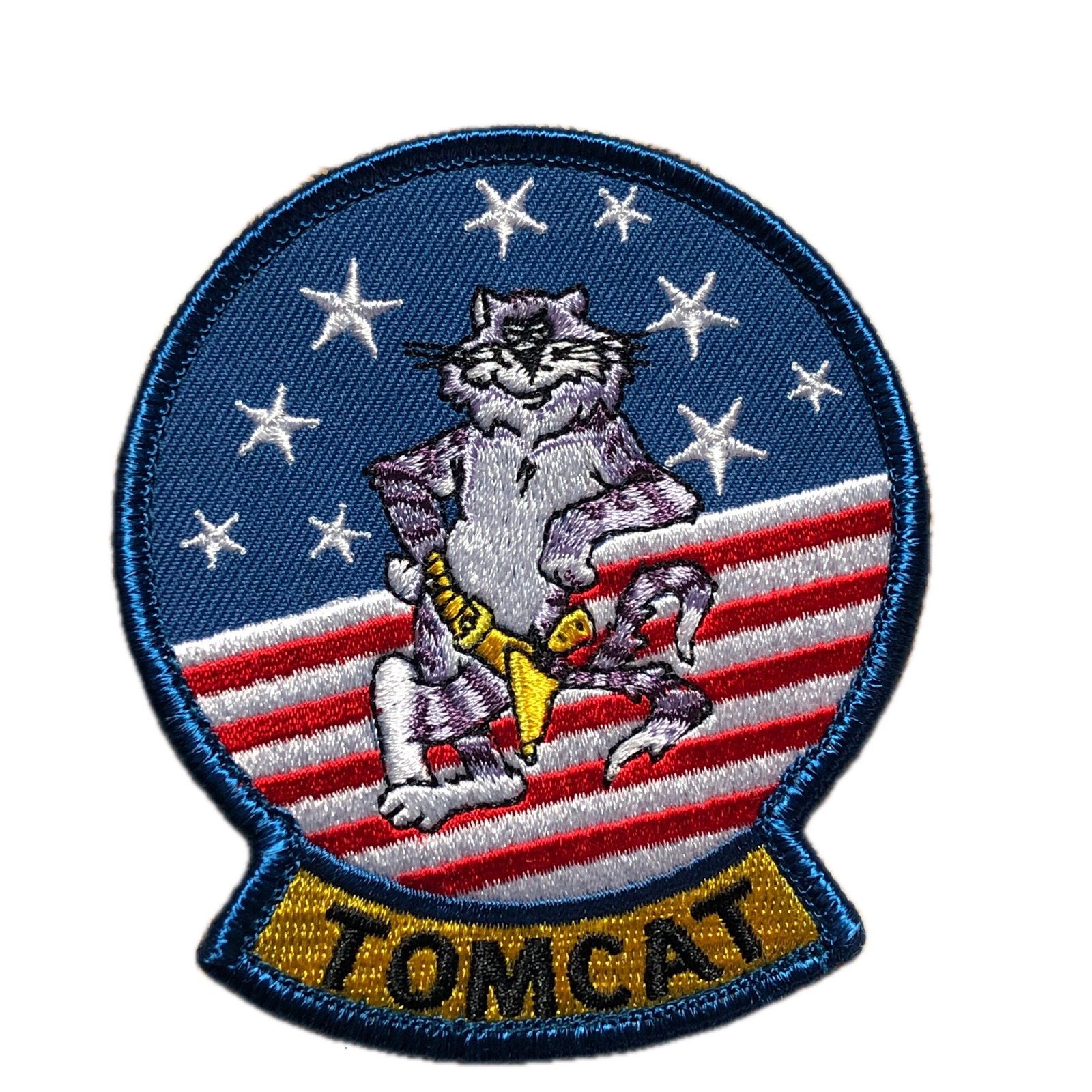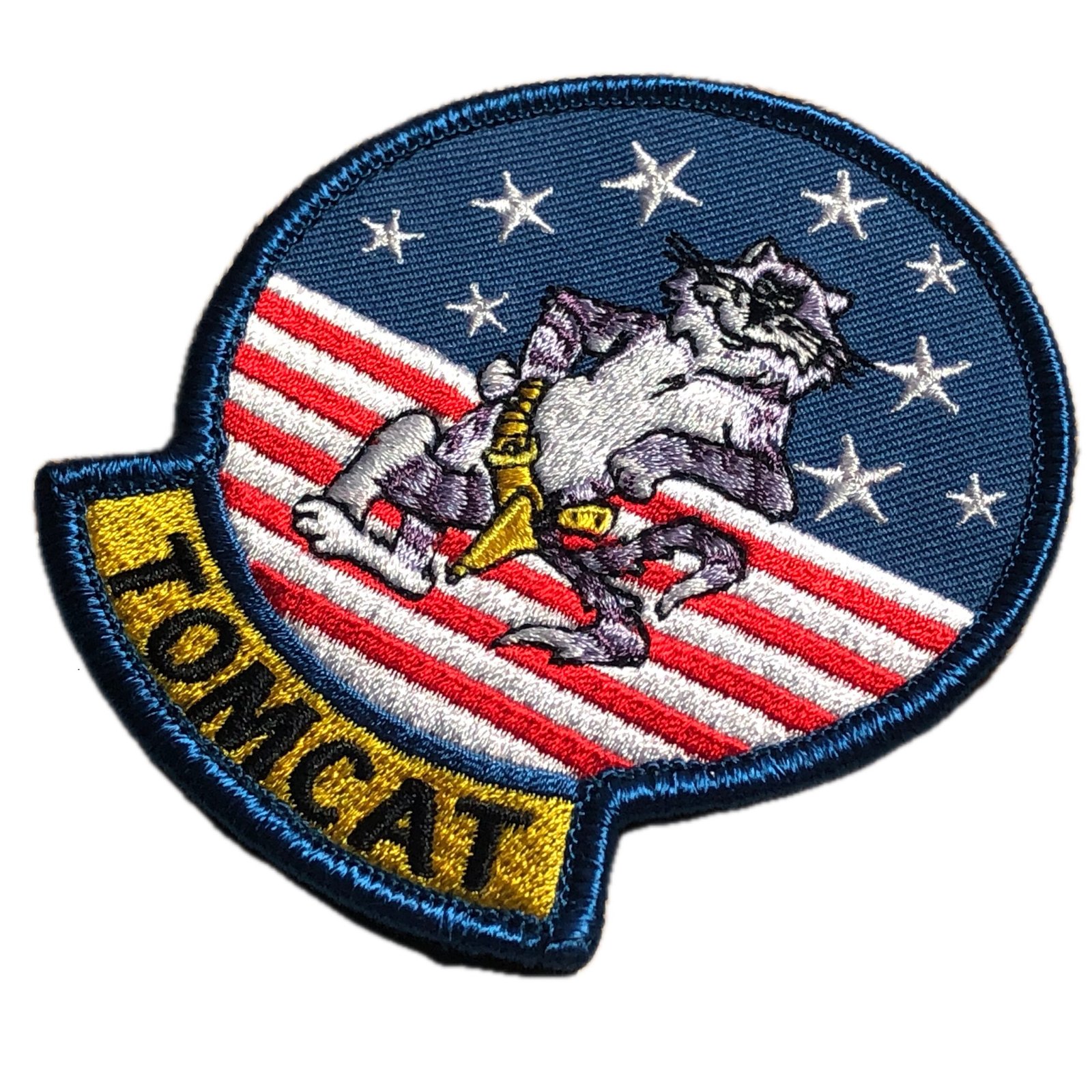 measures 3.5×3 (tomcat) and 3.5×3.5 (vf-1) inches, either iron on or hook and loop backing. Hook fastener is attached to the patch, loop part is provided as well