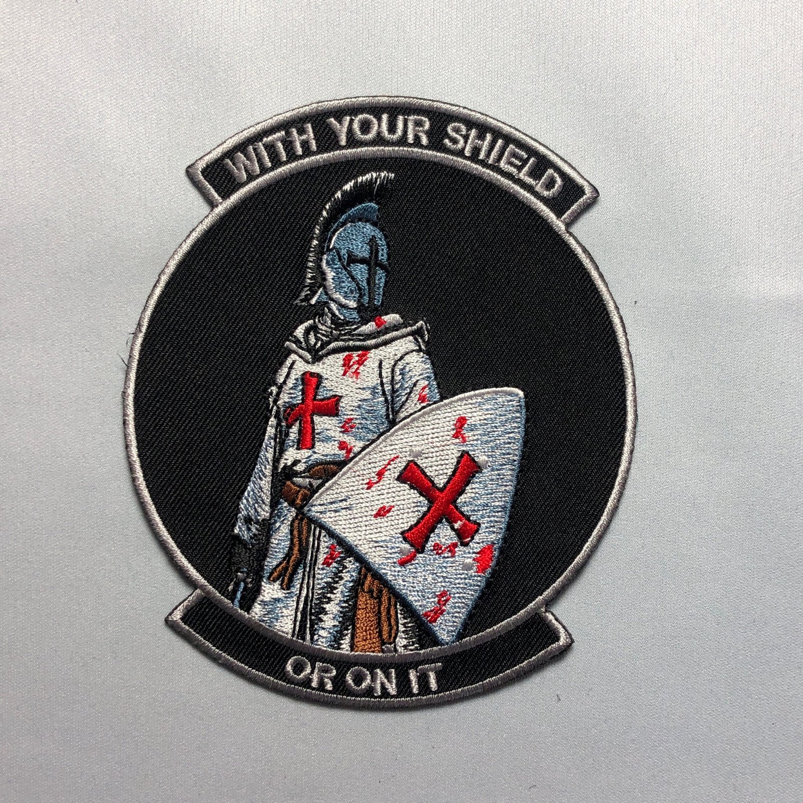 4 x 4.5 inches top quality (hook and loop)* or iron on patch.